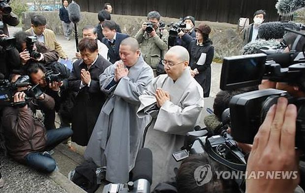瑞山浮石寺で製作・保管されていたが、日本に渡ってから再び韓国に搬入された金銅観音菩薩坐像の所有権攻防と関連し、浮石寺の僧侶たちが14日、日本を訪問した(2013.3.14)